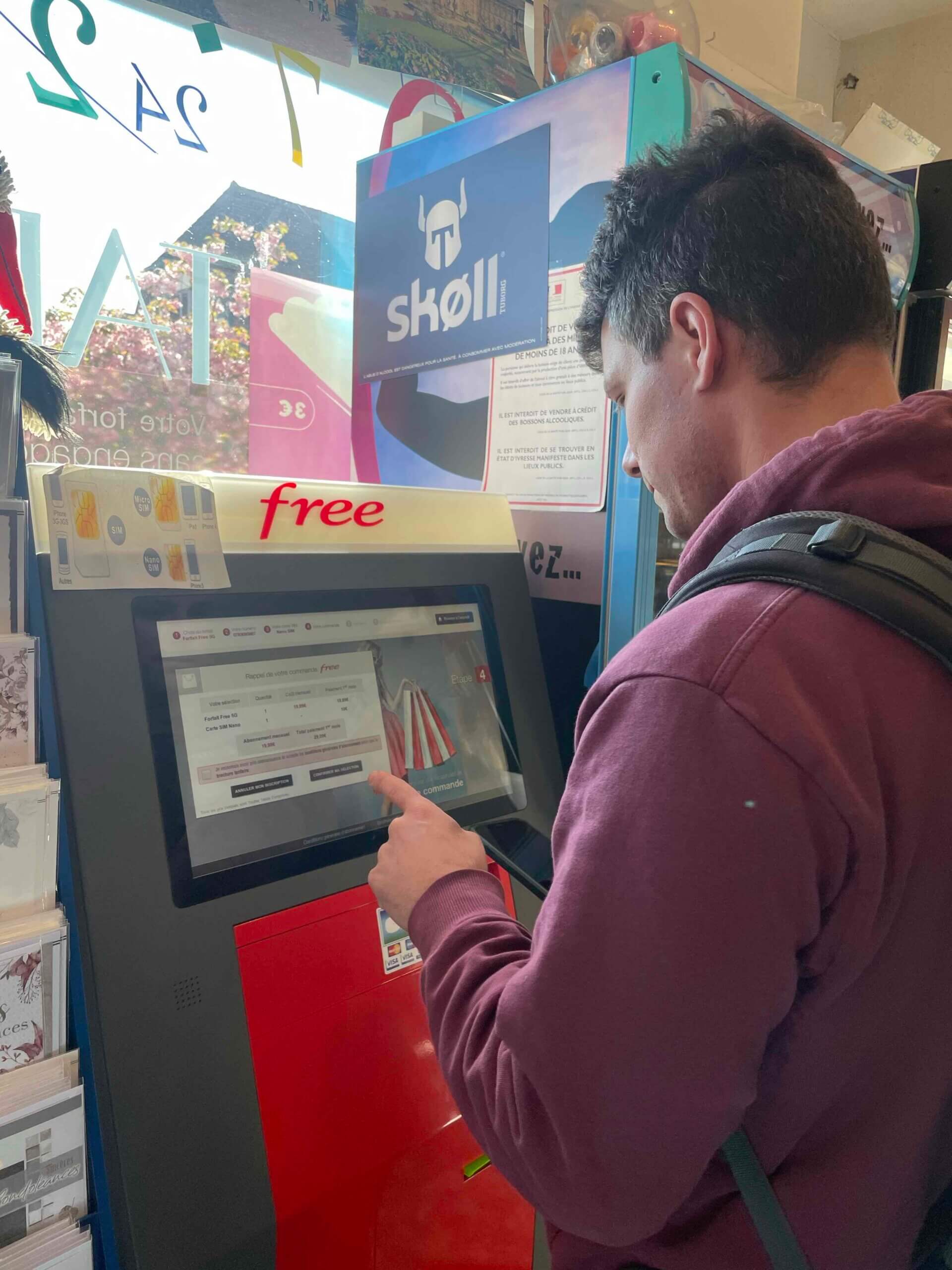 Normalerweise haben wir uns bisher immer eine SIM-Karte in den jeweiligen Ländern gekauft. Wir wissen aber schon aus unseren früheren Reisen, dass mobile Daten in den USA und vor allem in Kanada nicht günstig sind. Deswegen kaufen wir uns in Frankreich eine SIM-Karte von ‚Free‚. Diese beantragt man an einem Automaten, die oft in ausgewählten Lottogeschäften oder Tankstellen stehen. Die Sprache bei dem Automaten ist auf französisch und wir haben bereits vorher eine detaillierte Anleitung gelesen und Screenshots gemacht. Für rund 20€ haben wir nun 25 GB Internet im Ausland, welches in vielen verschiedenen Ländern gilt. Falls man nicht mal eben nach Frankreich fahren kann um dort eine SIM-Karte zu kaufen, für den könnte die elektronische SIM-Karte von ‚Free‘ interessant sein.