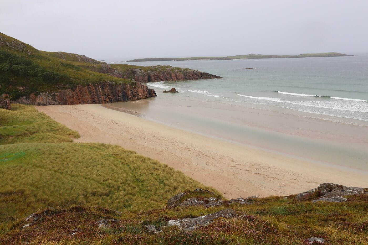 Im Norden von Schottland liegen einige wunderschöne Strände, wie der Durness Beach und der Ceannabeinne Beach. Bei besserem Wetter würde hier glatt Südseefeeling aufkommen, so weiß ist der Strand und so hell ist das Wasser. Leider haben wir auf unserem Schottland Roadtrip mit dem Camper nicht so gutes Wetter und der Regen verfolgt uns nun schon lange.