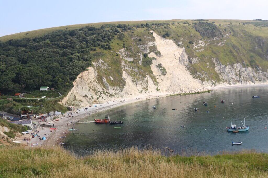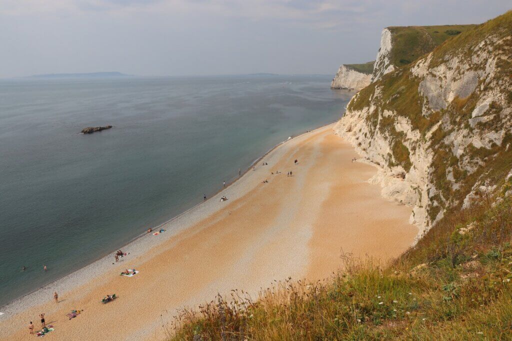 Unser nächstes Ziel ist die Jurassic Coast, welche auch zum UNESCO-Weltkulturerbe gehört und für seine spektakulären Felsformationen und Fossilienfunde bekannt ist. Besonders beeindruckend und gleichermaßen bekannt ist die Durdle Door. Dabei handelt es sich um eine Naturbrücke aus Kalksandstein an einem wirklich wunderschönen Strand. Die Durdle Door ist das beliebteste Fotomotiv an der Jurassic Coast, wenn nicht sogar in ganz Cornwall und Touristen aus aller Welt kommen zu diesem Strand. Das Wasser ist klar und leuchtend blau und an einem warmen Sommertag kann man hier richtig schön baden.