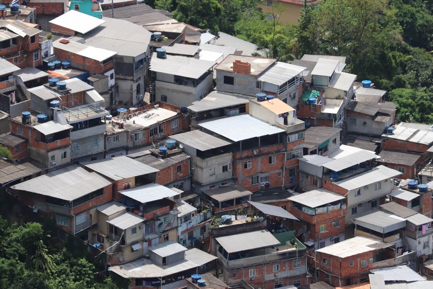 In den Außenbezirken von Rio und an den Hängen über den Stränden wohnen tausende Einwohner in illegal errichteten Armenvierteln, auch bekannt als Favelas. In Rio gibt es schätzungsweise rund 1.000 Favelas, wobei sich die meisten im Norden der Stadt befinden. Oft werden die Favelas durch die Drogenhändler kontrolliert und es kommt immer wieder zu Kämpfen zwischen den verschiedenen Drogenbanden und auch mit der Polizei.