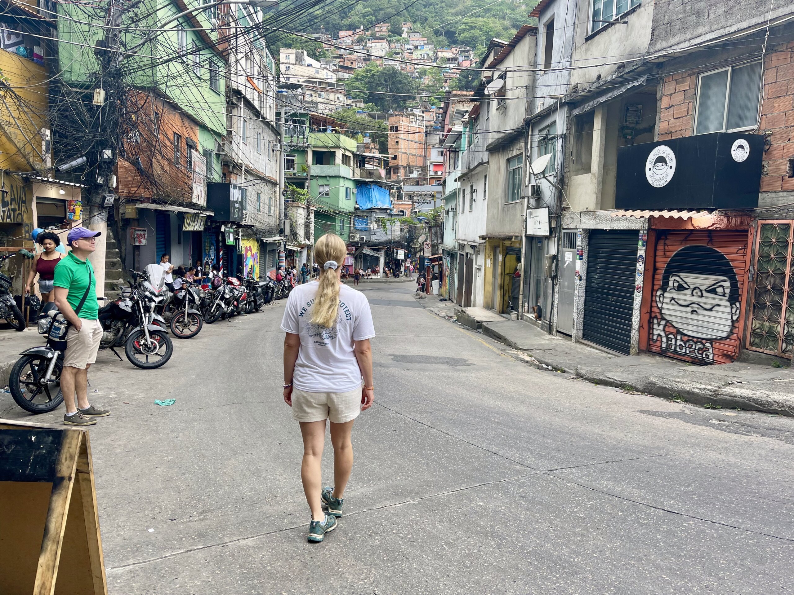 In der Favela regiert nämlich eine Drogenbande und wir sind mehr als einmal an ihnen vorbei gelaufen, was ein sehr komisches Gefühl ist. Sie haben in einer kleinen Gasse gesessen, mit riesigen Gewehren und vor ihnen lagen kleine Drogenpäckchen. Das war schon sehr verstörend und unheimlich zu sehen und einfach dort vorbei zu gehen. Unser Guide hat uns berichtet, dass in der ganzen Favela verteilt überall Wachposten sind, die alles genau beobachten und sobald eine fremde Drogenbande oder die Polizei das Viertel betritt, wissen alle sofort Bescheid.
