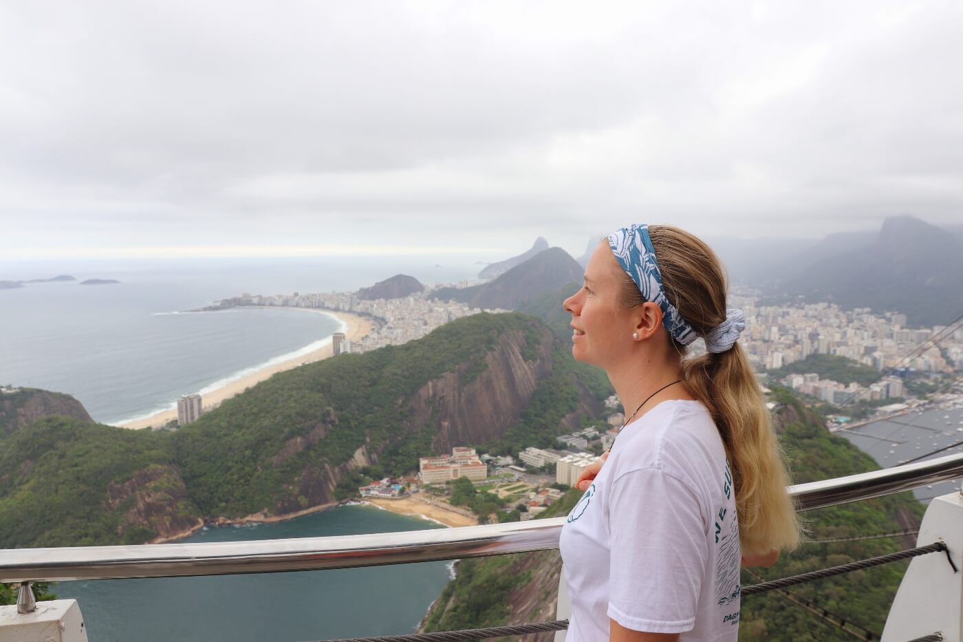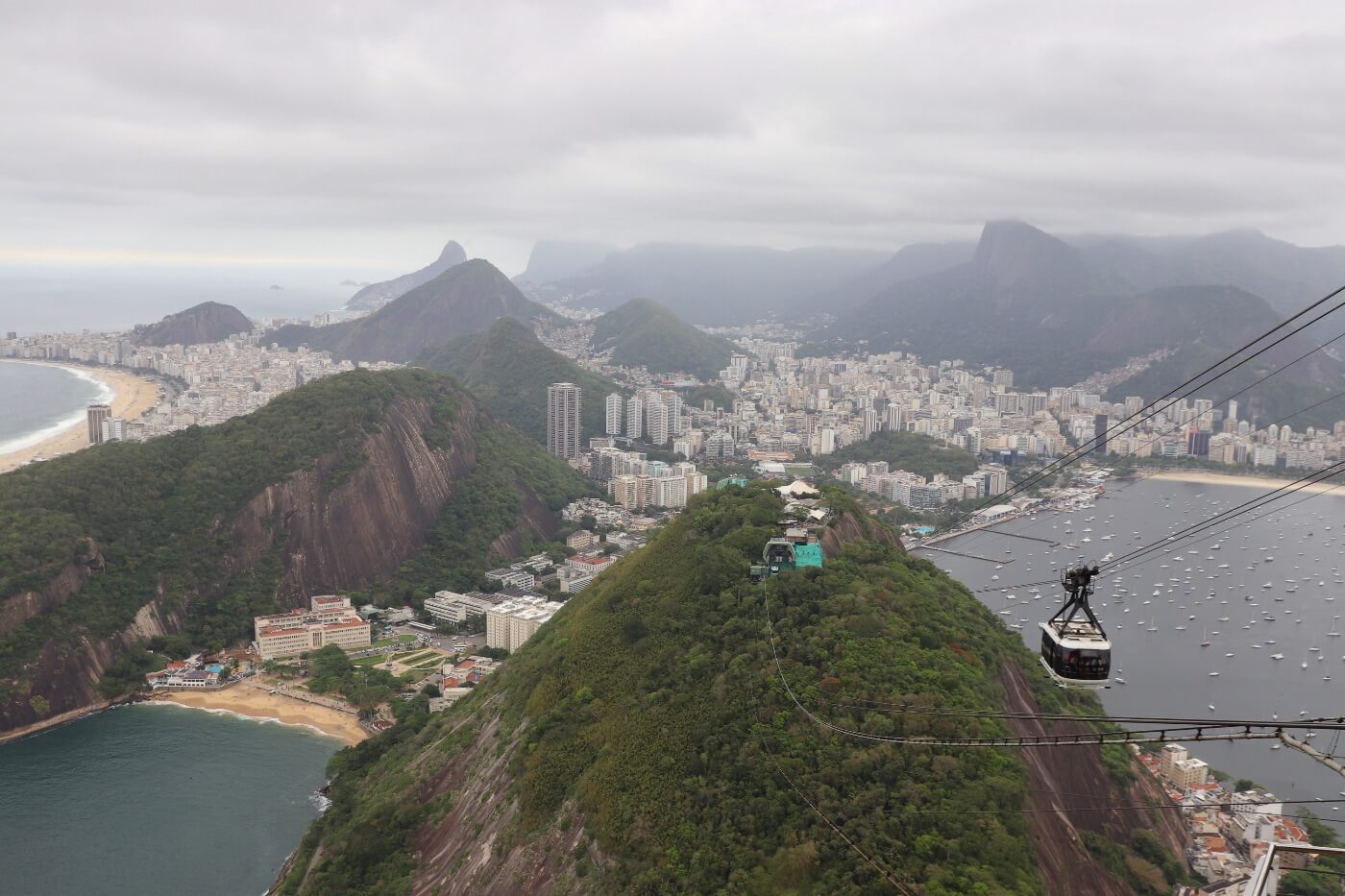 Bei unserem Besuch haben wir leider nicht so gutes und sonniges Wetter und am Vortag war der Zuckerhut ganztags in Wolken verhüllt, was in Rio nicht unüblich ist. Zuerst geht es mit der Seilbahn zur Mittelstation und dann von dort auf mit einer weiteren Seilbahn auf die Spitze des Zuckerhuts. Oben angekommen genießen wir die spektakuläre Aussicht und wohin wir auch gucken, es ist einfach nur fantastisch! Wir haben sogar einen Nasenbären und die kleinen Büschelaffen gesehen,- und das sozusagen mitten in der Stadt.