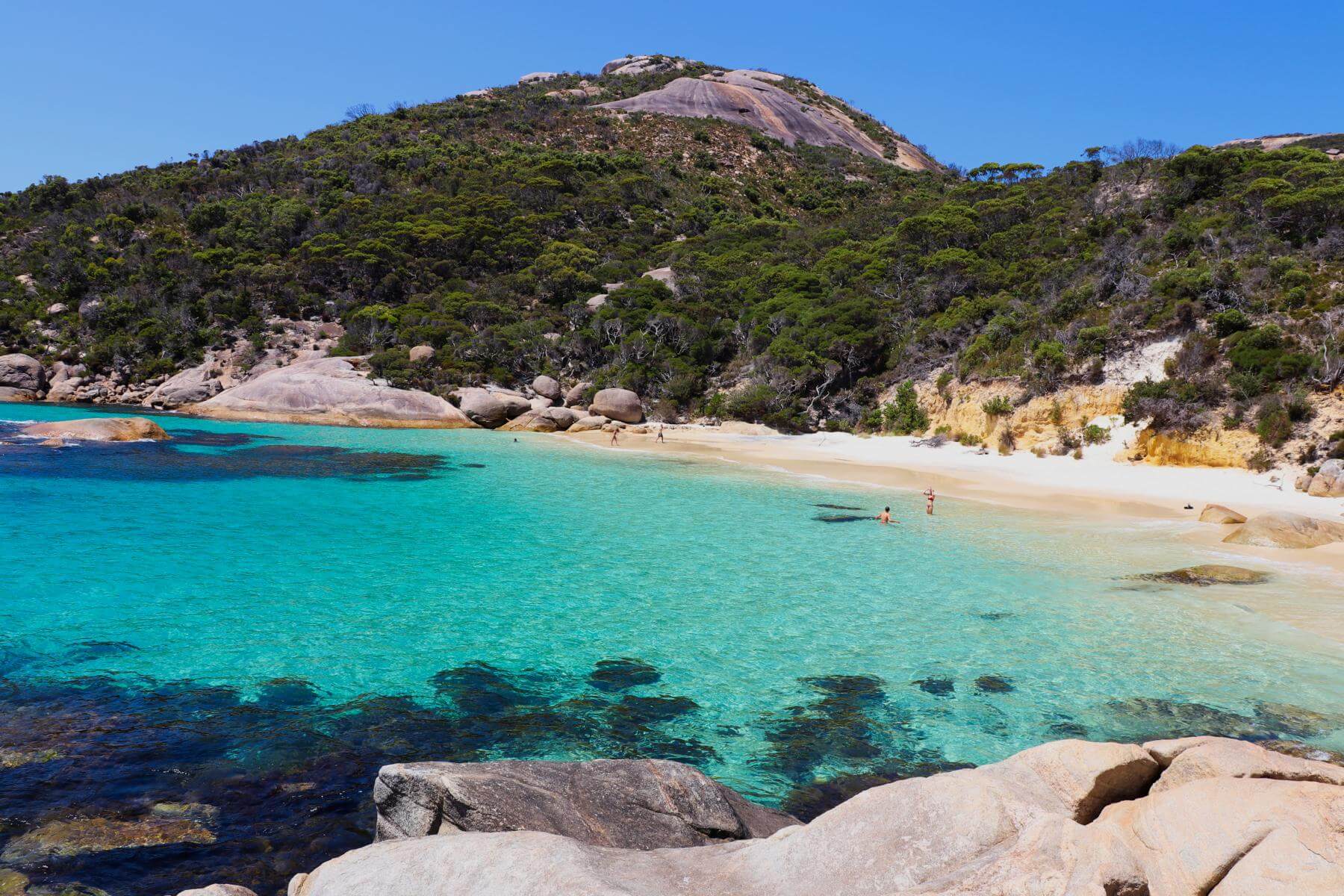 Der Cape Le Grand Nationalpark ist einer unserer Lieblingsorte in Australien. Der Nationalpark befindet sich etwa 50 km weit entfernt von Esperance. Am Strand von Lucky Bay leben die süßen Kängurus. Wenn man Glück hat, kommen sie bei einem vorbei gehoppelt und legen sich sogar unter den Sonnenschirm. Direkt neben dem Strand vom Lucky Bay gibt es einen Campingplatz, sogar mit heißen Duschen. Die Plätze muss man unbedingt online vorreservieren, sonst ist das Camp schnell ausverkauft.