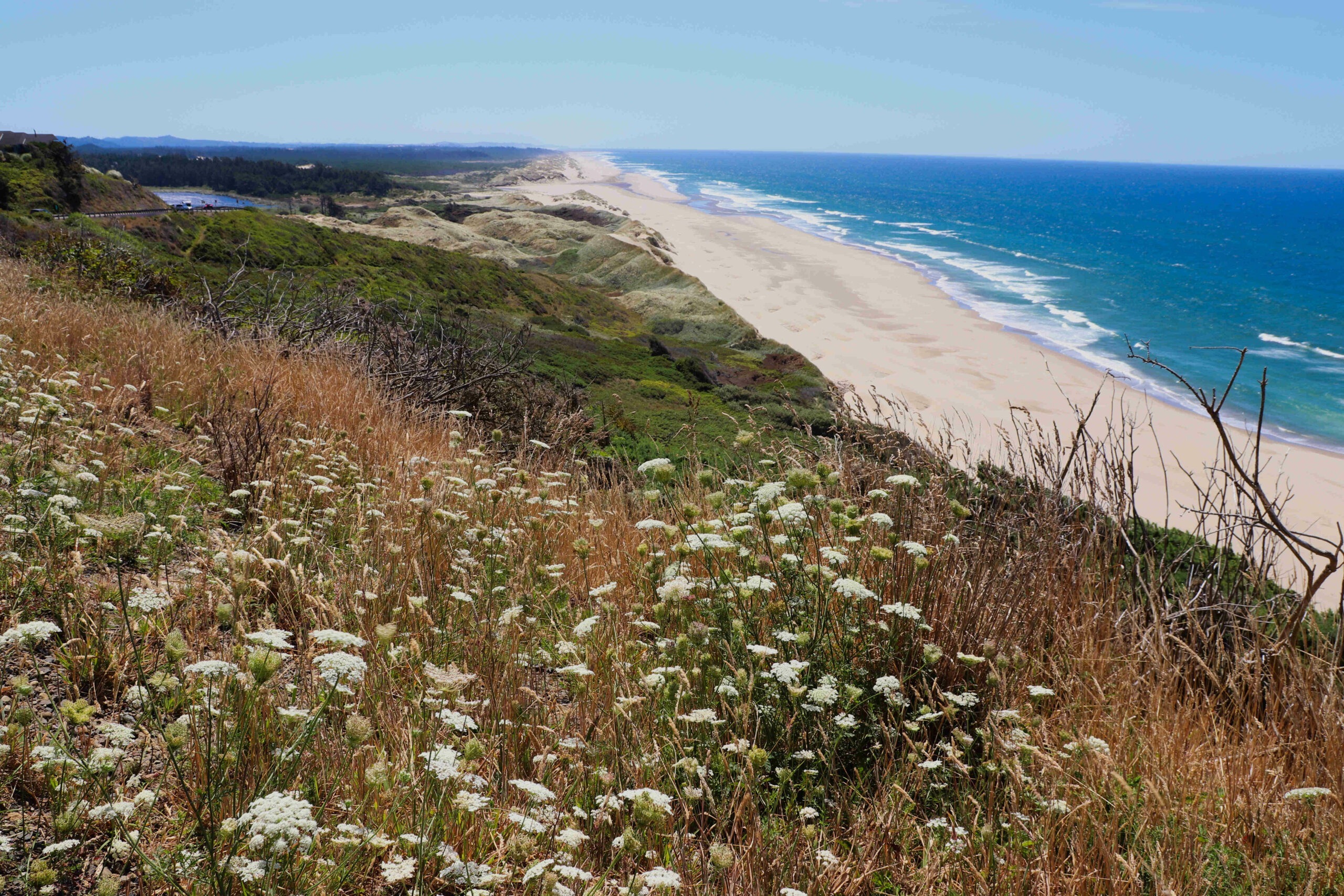 Danach sind wir ohne nennenswerte Stopps weiter an die Grenze nach Oregon gefahren. Hier haben wir an einer Meereseinmündung geschlafen, welche die Staaten Washington und Oregon trennt. Während wir zu Abend gegessen haben, haben wir direkt aus unserem Fenster einen Wal gesehen. Wir haben unseren Augen nicht getraut und sind so schnell es geht mit der Kamera aus dem Auto gesprungen und ans Wasser gejagt! Dort schwamm genüsslich ein Buckelwal seine Kreise.