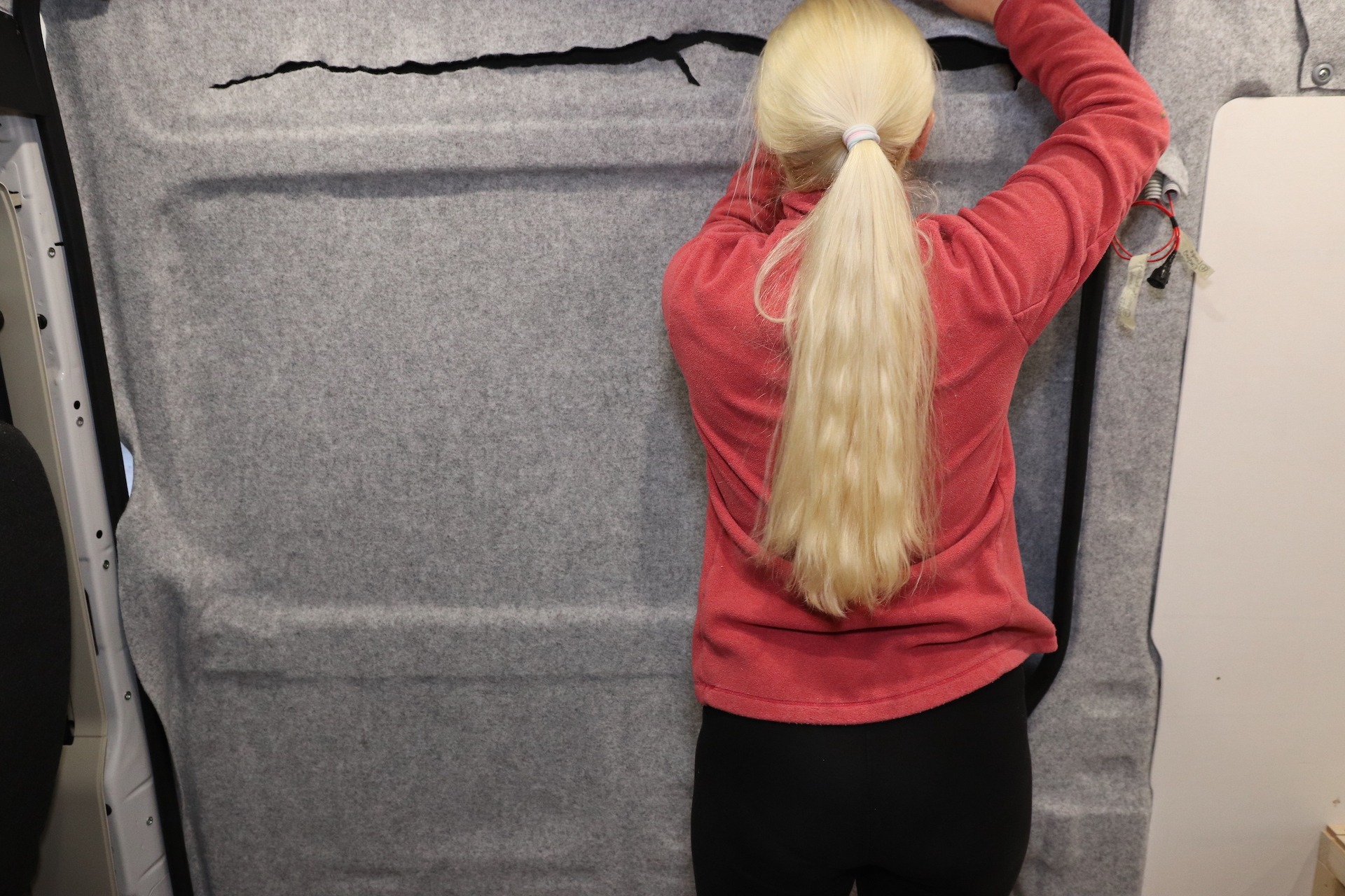 Hecktüren und Schiebetür mit Filz verkleiden
