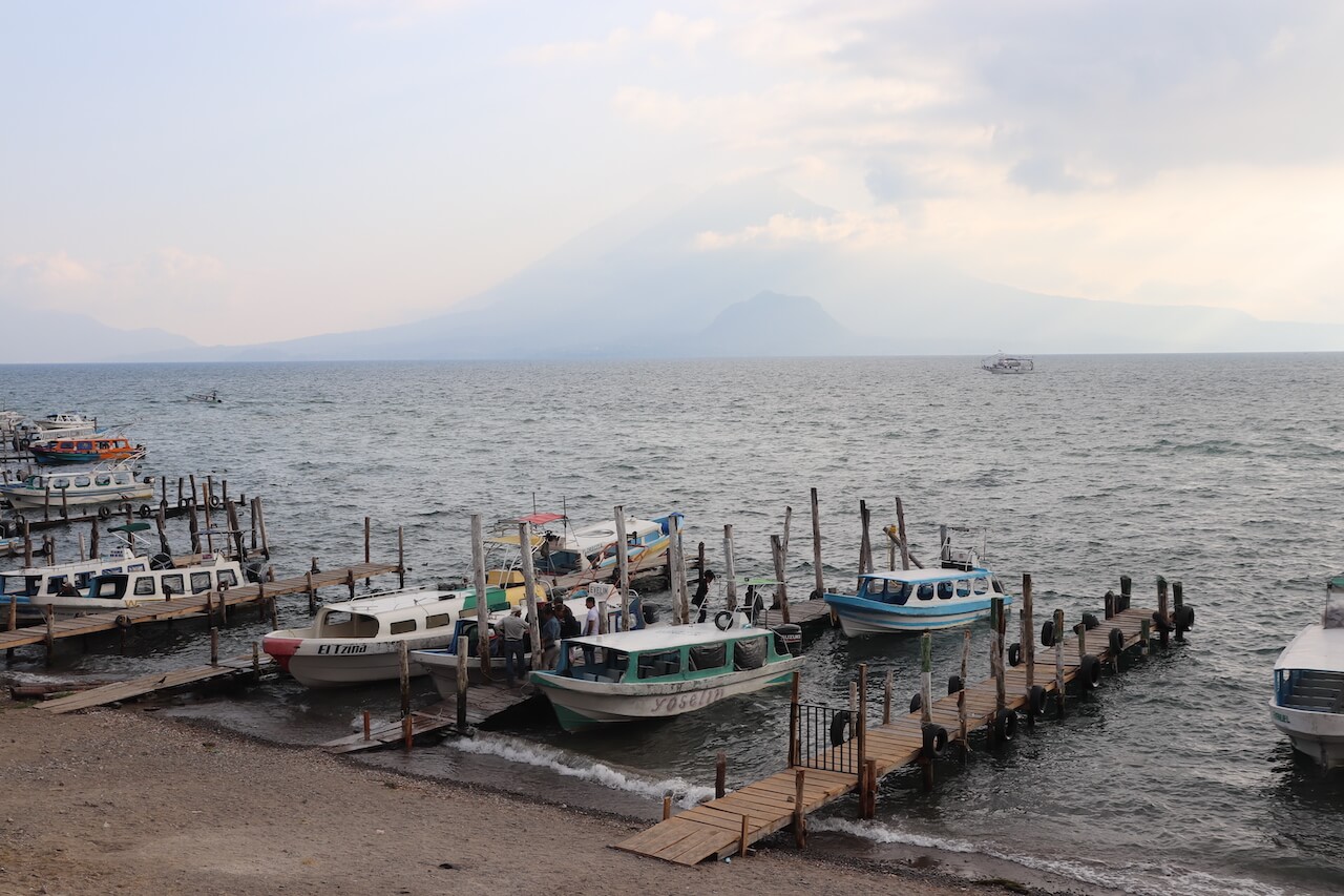 Unser Ziel am nächsten Tag ist der Lake Atitlan, der von den drei mächtigen Vulkanen Tolimán, San Pedro & Atitlán umgeben ist. Der See liegt im Hochland von Guatemala auf einer Höhe von 1562 Metern und ist ein beliebstes Ausflugsziel bei Touristen. Trotzdem hat sich die Gegend seinen ursprünglichen Charme erhalten und ist wirklich wunderschön.