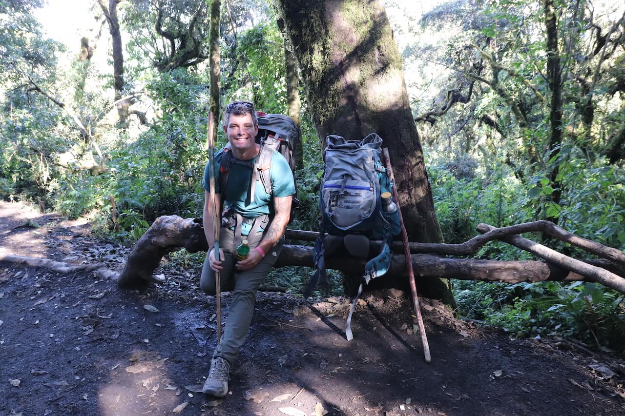 Am nächsten Morgen geht es dann los und wir lassen unser Auto zurück und legen die schweren Rucksäcke in den Kofferraum. Nach einer kurzen Fahrt sind wir dann auch schon da und es geht los. Der Weg ist direkt sehr steil und führt erst durch einige Felder. Die Rucksäcke sind trotz sorgfältiger Überlegung sehr schwer und immer wieder halten wir an und verschnaufen uns. Der Wald beginnt und damit auch einige steile Treppen. Der Weg führt steil durch den Wald den Berg hinauf und es ist wirklich sehr anstrengend. Unterwegs machen wir immer wieder kleine Pausen, die sind auch dringend nötig. Insgesamt vier Stunden brauchen wir für den Anstieg und ich übertreibe nicht wenn ich sage, dass es wirklich sehr anstengend ist. Erschöpft erreichen wir das Base Camp und beziehen unser Zelt.