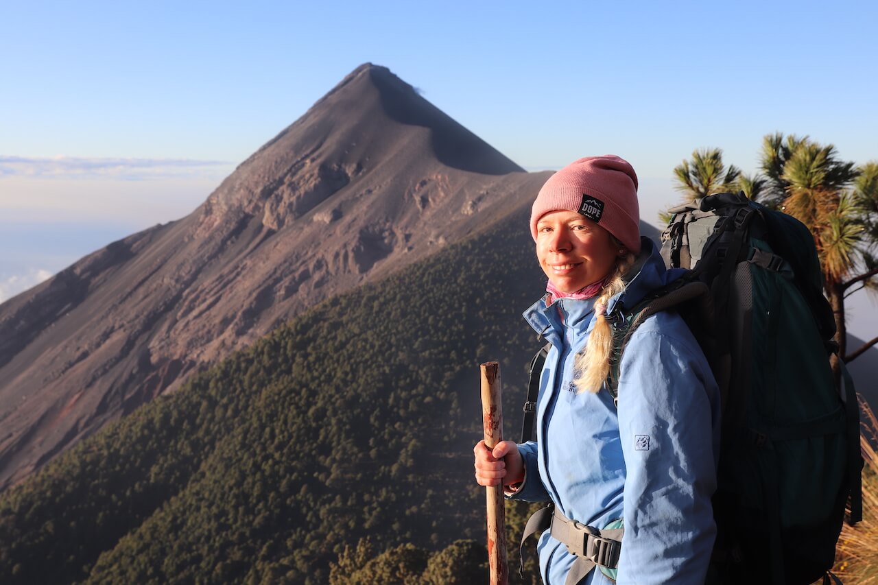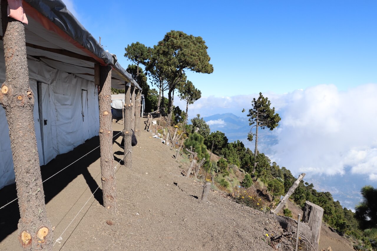 Insgesamt gibt es in Guatemala 33 Vulkane, von denen drei dauerhaft aktiv sind. Die Besteigung des Acatenango ist eines der großen Touristenhighlights und auch wir möchten uns das nicht entgehen lassen. Dabei besteigt man den nicht aktiven Acatenango Vulkan und kann von dort oben den aktiven Fuego Vulkan sehen. Bei der Wanderung startet man auf 2300 Meter und überwindet auf nur sieben Kilometer Strecke insgesamt 1300 Höhenmeter. Das Basecamp liegt auf einer Höhe von 3650 Meter und die verschiedenen Touranbieter haben dort ihre Lager aufgebaut. Zelte und Schlafsack müssen wir also nicht tragen, aber schwer wird der Rucksack trotzdem werden.