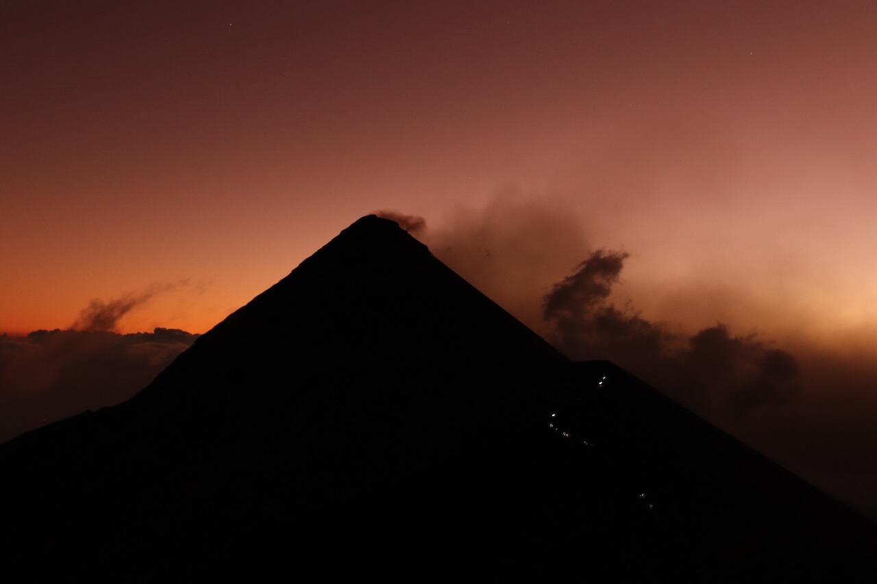 Wir sind fast froh als um 4 Uhr nachts unser Wecker klingelt und wir uns bereit machen für die Besteigung des Fuego. Unsee Guides sagen uns direkt, dass es oben am Berg wahrscheinlich zu stürmisch sein wird, aber allen ist kalt und so gehen wir dann doch los. Über einen kleinen Pfad geht es steil den Berghang hinauf, bewaffnet mit dicken Klamotten und Stirnlampe. Der Aufstieg ist rutschig und wir rutschen andauernd zurück, die Luft wird zunehmend dünner.