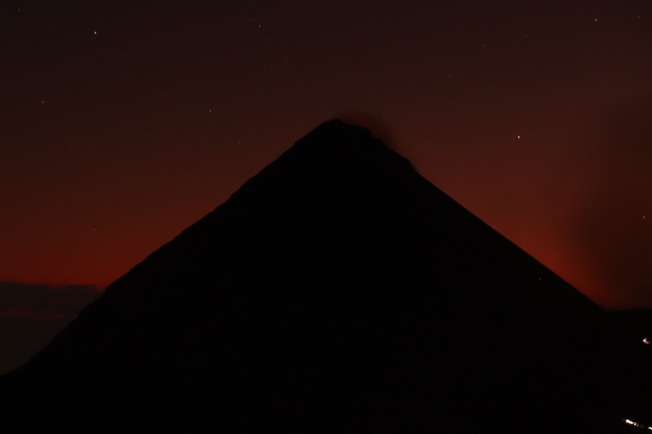 Dazu wird es immer nebeliger und bewölkter und die ersten verschwinden in ihren Zelten. Wir harren draußen noch etwas aus, unser Stativ mit der Kamera ist schließlich aufgebaut und wir würden so gernen einen richtigen Ausbruch mit Lava sehen. Leider wird es nicht dazu kommen und irgendwann geben wir auch auf und legen uns in das Zelt. Die Nacht wird nicht angenehm werden und wir bekommen kaum ein Auge zu. Der Wind rüttelt an unserem Zelt und obwohl wir nichts mehr getrunken haben meldet sich mehrmals die Blase und dazu ist es saukalt.