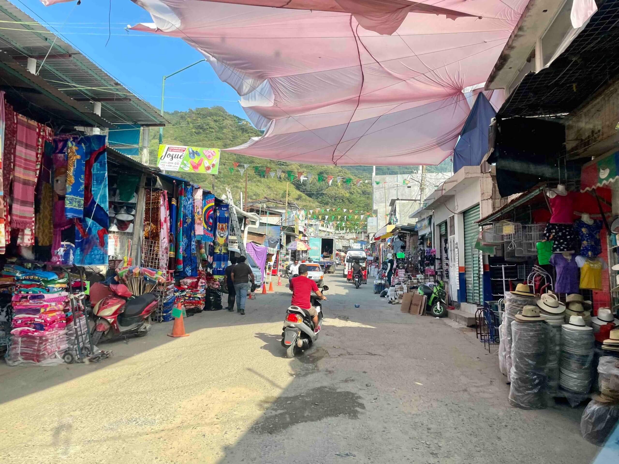 Nachdem wir sechs Wochen in Mexiko verbracht haben ist es Zeit für das nächste Land unserer Reise auf dem Panamerican Highway. Wir werden die Grenze von Mexiko nach Guatemala bei dem kleinen Grenzort La Mesia überqueren. Die Grenze wirkt eher einer Fußgängerzone oder auf einem Markt und die kleine Straße ist zugebaut mit zahlreichen Geschäften und Ständen. Mit einem größeren Auto würde es hier sehr eng werden und so quetschen wir uns durch die kleinen Straßen und fühlen uns überhaupt nicht wie an einer offiziellen Grenzstation.