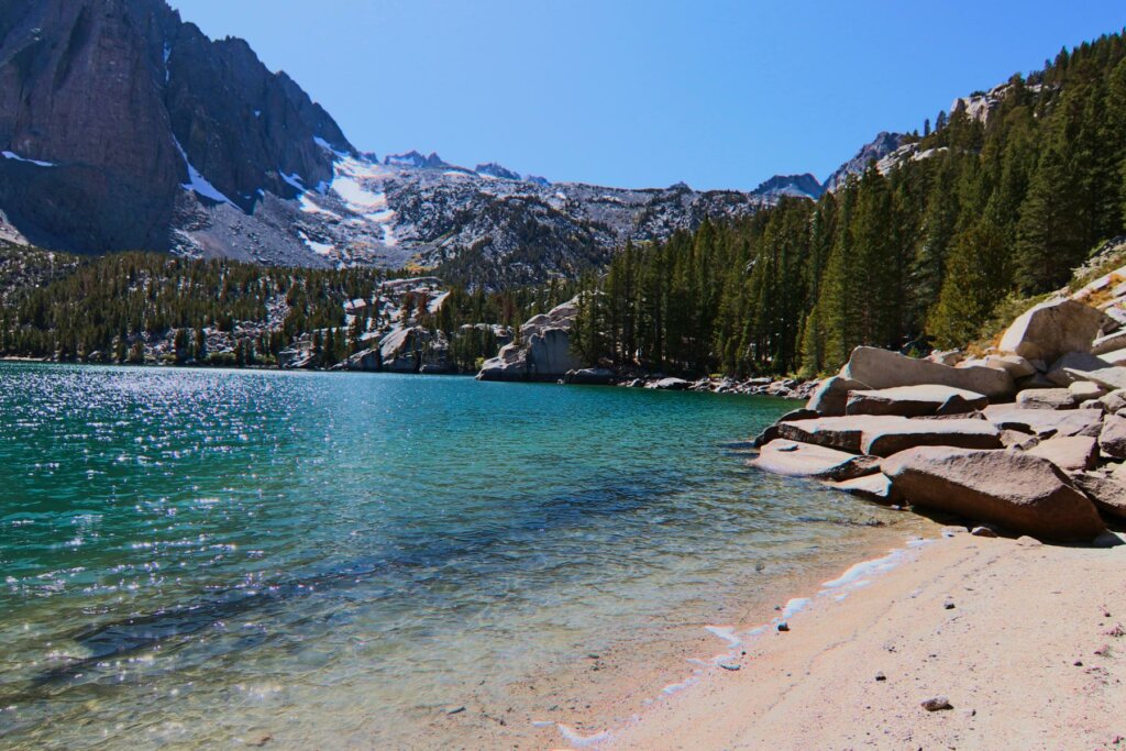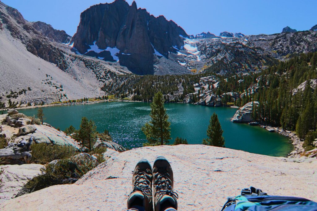 Von der Big Pine Lake Wanderung haben wir vorher rein durch Zufall ein Bild gesehen und wollten diese unbedingt machen. Die Straße zum Startpunkt ist allerdings eine echte Herausforderung. Auf nur 17 Kilometern geht es über 1000 Höhenmeter hoch, die Straße ist also wirklich sehr steil. Wir haben dies früh morgens in Angriff genommen, denn am Tag kann es in dem Tal schon einmal ziemlich heiß werden. Langsam, aber erleichtert kommen wir oben an und parken auf dem Campingplatz. Dieser ist direkt neben dem Startpunkt der Wanderung.