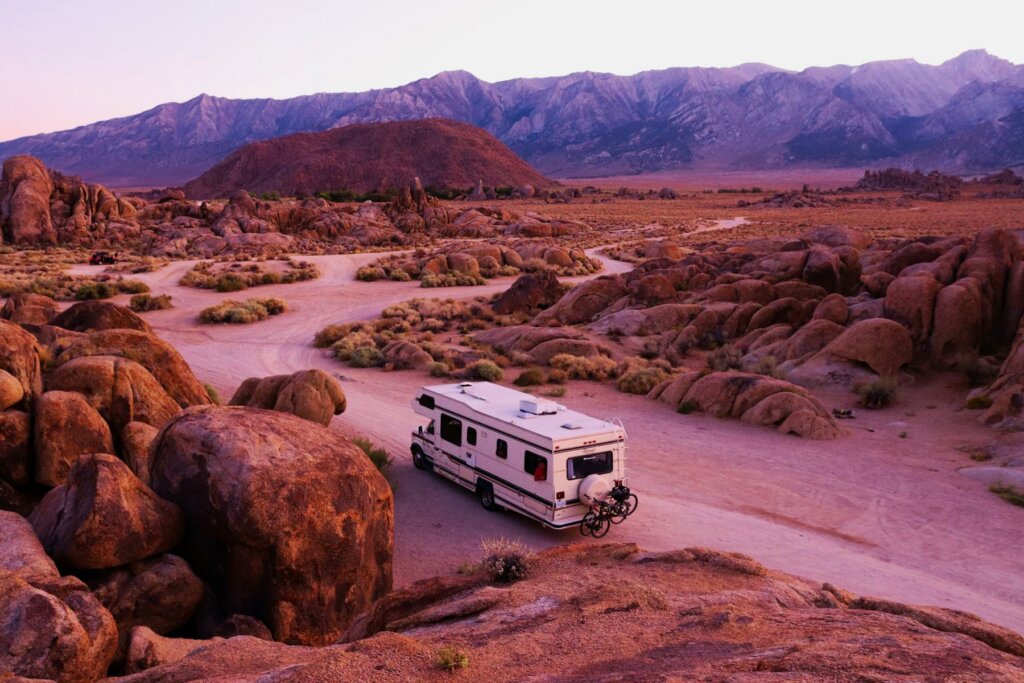 Am nächsten Tag fahren wir zu den bekannten Alabama Hills. In den Alabama Hills wurden schon allerlei Western-Filme gedreht und auch wir fühlen uns hier wie im wilden Westen. Da dieses Gebiet BLM-Land ist (public Land), kann man hier sogar frei campen. Auswahl und Platz gibt es hier genügend.