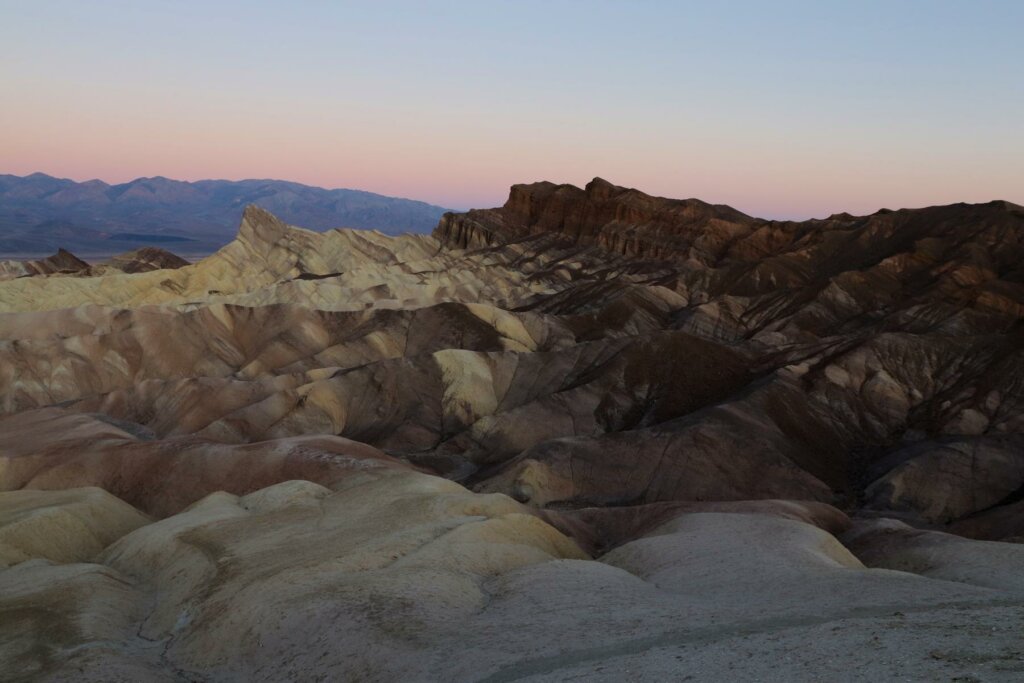 Der Zabriskie Point besteht aus einer hügeligen Erosionslandschaft aus versteinerten Sedimenten eines vor 5 Millionen Jahren ausgetrockneten Sees. Diese Hügel bestehen aus den verschiedensten Farben wie gelb, grau und braun.